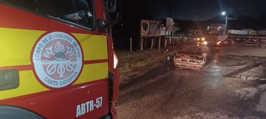 Ao chegar ao local, os bombeiros encontraram o veículo completamente em chamas. O motorista estava fora do carro, consciente e sem ferimentos, segundo avaliação feita pela equipe.