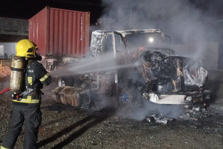 Na madrugada de sexta-feira (17), por volta das 00h45, as viaturas foram acionadas para combater um incêndio em um caminhão, na Rua Ana de Borba Pereira, no bairro Corveta.