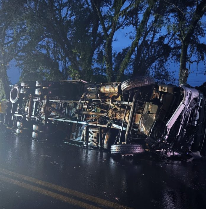 Com o impacto da batida, os danos nos veículos foram severos. O caminhão chegou a tombar na pista, o que deixou o trânsito lento no local por várias horas.