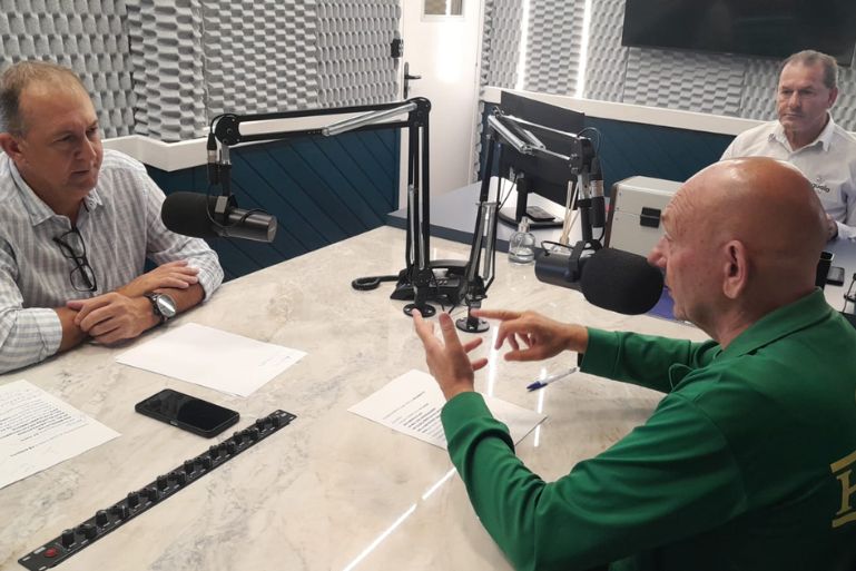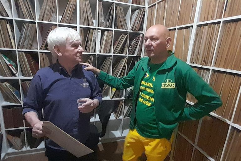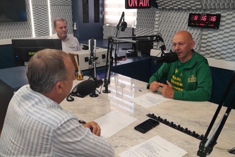 Antes, porém, o dono da Havan foi recebido pelo diretor da emissora, Marcos Gelain e pelo radialista Saulo Tavares que lhe apresentaram os novos espaços e estúdios da Araguaia, além de conhecer o acervo fonográfico histórico mantido pela emissora.