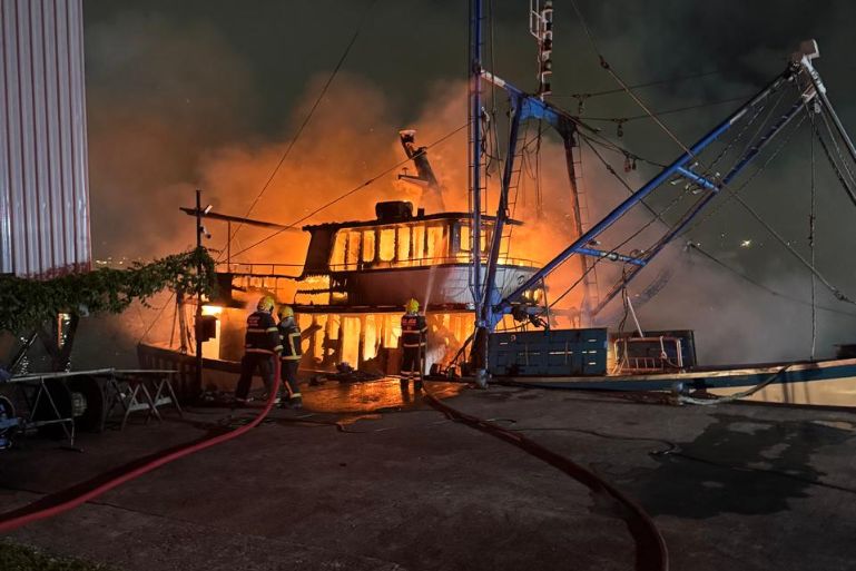 De acordo com a corporação, foi constatado que a embarcação, com aproximadamente 24,7 metros de comprimento e construída em madeira, já estava sendo consumida pelas chamas na parte superior do convés.