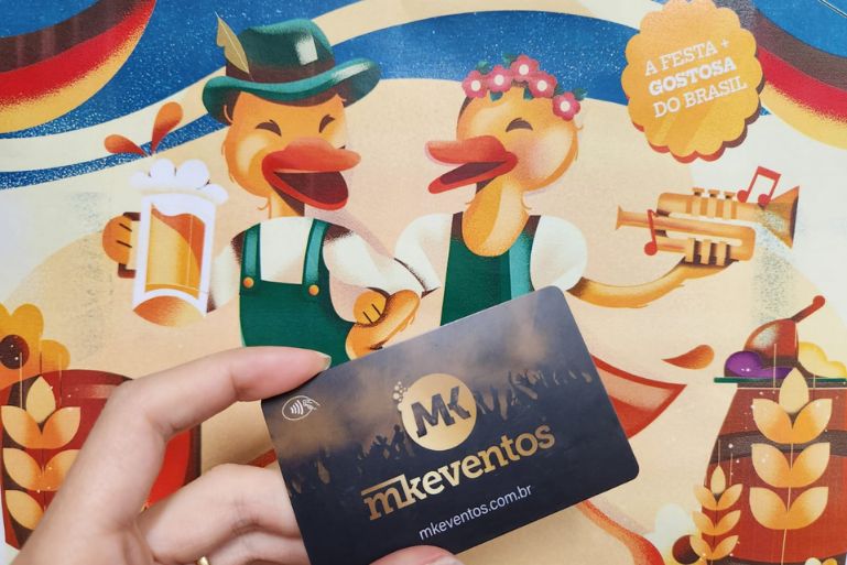 “Este ano temos o chaveiro como uma opção para nossos fenafesteiros. Ele utiliza para o pagamento durante a festa e depois poderá levá-lo como uma lembrança da festa de 2025”, comenta a diretora-geral da Fundação Municipal de Turismo, Juliana da Silva.