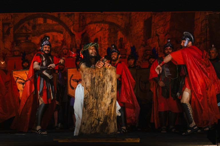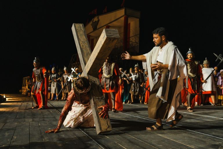 O pátio da Igreja São Cristóvão ficou lotado na noite desta quinta-feira (2) durante a encenação do espetáculo “Paixão e Morte de um Homem Livre”, em Guabiruba, no Vale do Itajaí.