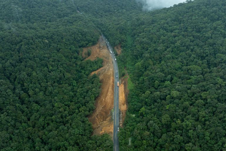 Paralelamente ao delicado processo de detonação, as obras de terraplanagem seguem em ritmo acelerado. Máquinas e trabalhadores atuam no quilômetro 15,4 da rodovia. O outro equipamento de segurança para os caminhoneiros que usam a SC está sendo feito no Km 17,4, onde o raio da curva será ampliado.