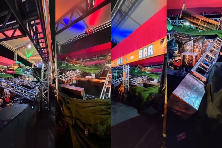 Até o momento, as causas do desabamento não foram divulgadas. A Polícia Civil deve iniciar uma investigação para apurar se houve falha na montagem da estrutura ou outro fator que contribuiu para o colapso.