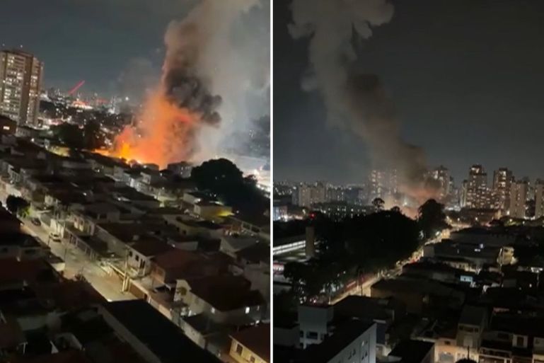 Imagens divulgadas nas redes sociais mostram um clarão, seguido por labaredas e uma densa nuvem de fumaça tomando conta da área. Parte de uma estrutura metálica cedeu e atingiu veículos estacionados próximos.
