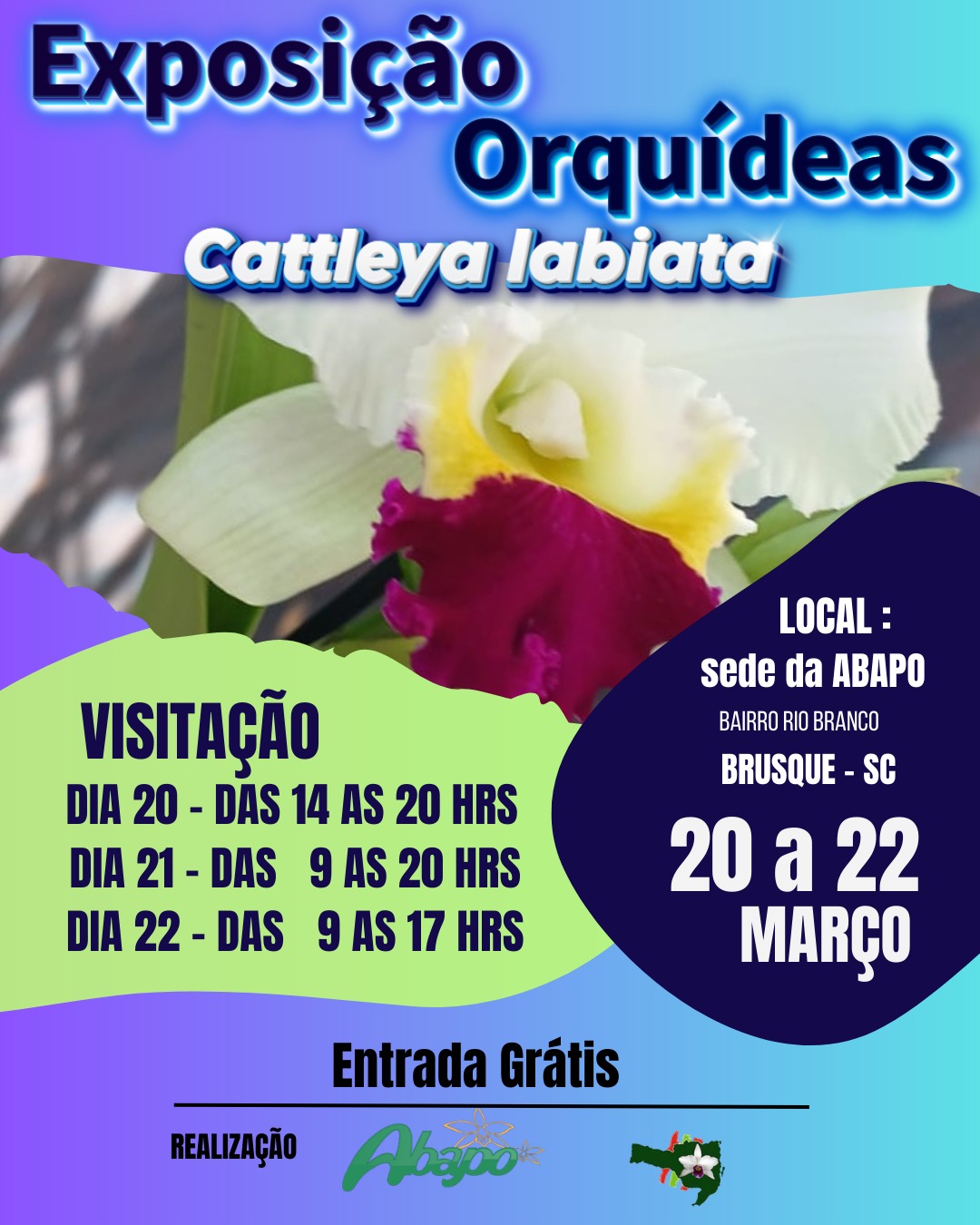A Associação Brusquense de Orquidófilos e Amadores de Plantas Ornamentais (ABAPO) promove, neste fim de semana, uma exposição especial de orquídeas da espécie Cattleya labiata, em sua sede, localizada no bairro Rio Branco, em Brusque.