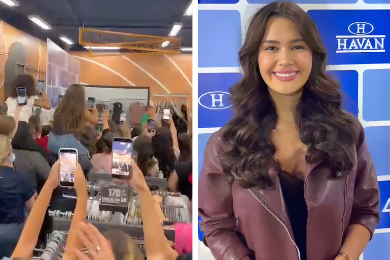 Na sequência, a influenciadora seguiu para o espaço principal da megaloja, onde foi recebida com entusiasmo pelos fãs. Gritos, aplausos e muita emoção marcaram a chegada.