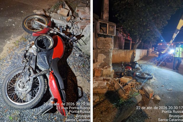 Um homem de 38 anos morreu após um acidente de trânsito registrado na noite de quarta-feira (22/4), no bairro Ponta Russa, em Brusque.