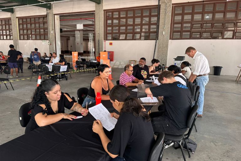 O Pavilhão da Fenarreco foi palco de um dia intenso de oportunidades na última terça-feira (17), durante a primeira edição do Feirão de Empregos do ano de 2026. Promovido pela Prefeitura de Brusque, por meio da Secretaria de Desenvolvimento Econômico e Inovação e do Sine, o evento reuniu cerca de 300 pessoas em busca de uma colocação no mercado de trabalho ou do primeiro emprego.