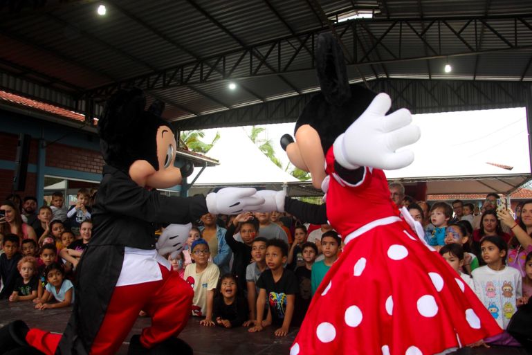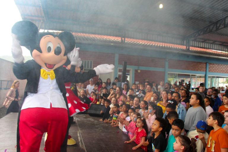 Entre as atrações que animaram o público, destaque para o show temático da Disney, com a presença dos personagens Mickey, Minnie, Margarida e Donald, apresentado pela equipe Plenitude Festas, e uma recreação animada com a equipe Recreare Festas Brusque, que trouxe brincadeiras para toda a família. A programação também contou com brinquedos infláveis, piscina de bolinhas, cama elástica, campo inflável com água, passeio de trenzinho, pipoca, algodão doce, refrigerante, água e muita animação — tudo pensado para envolver crianças e adultos em um mesmo clima de celebração.