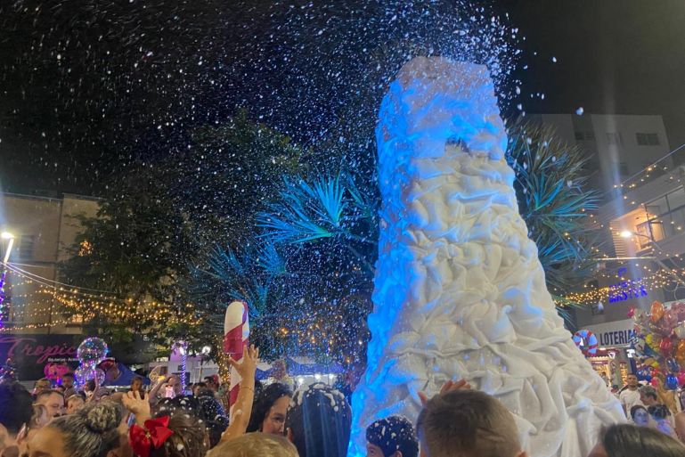 Além do acendimento das luzes, a noite contou com neve artificial e com a abertura do escritório do Papai Noel, atraindo principalmente as crianças.