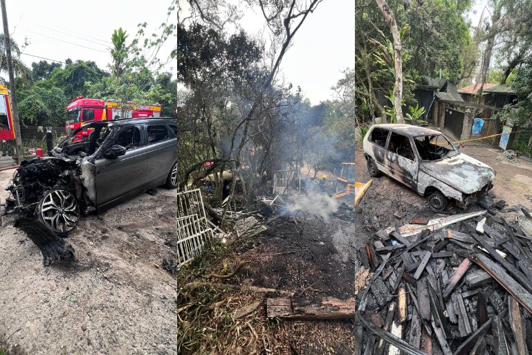 Um incêndio de grandes proporções destruiu completamente um rancho de madeira e atingiu dois veículos na madrugada deste sábado, 25 de outubro de 2025, no Centro de Bombinhas. A ocorrência foi registrada por volta das 5h49 na Rua Garoupas, sem número.