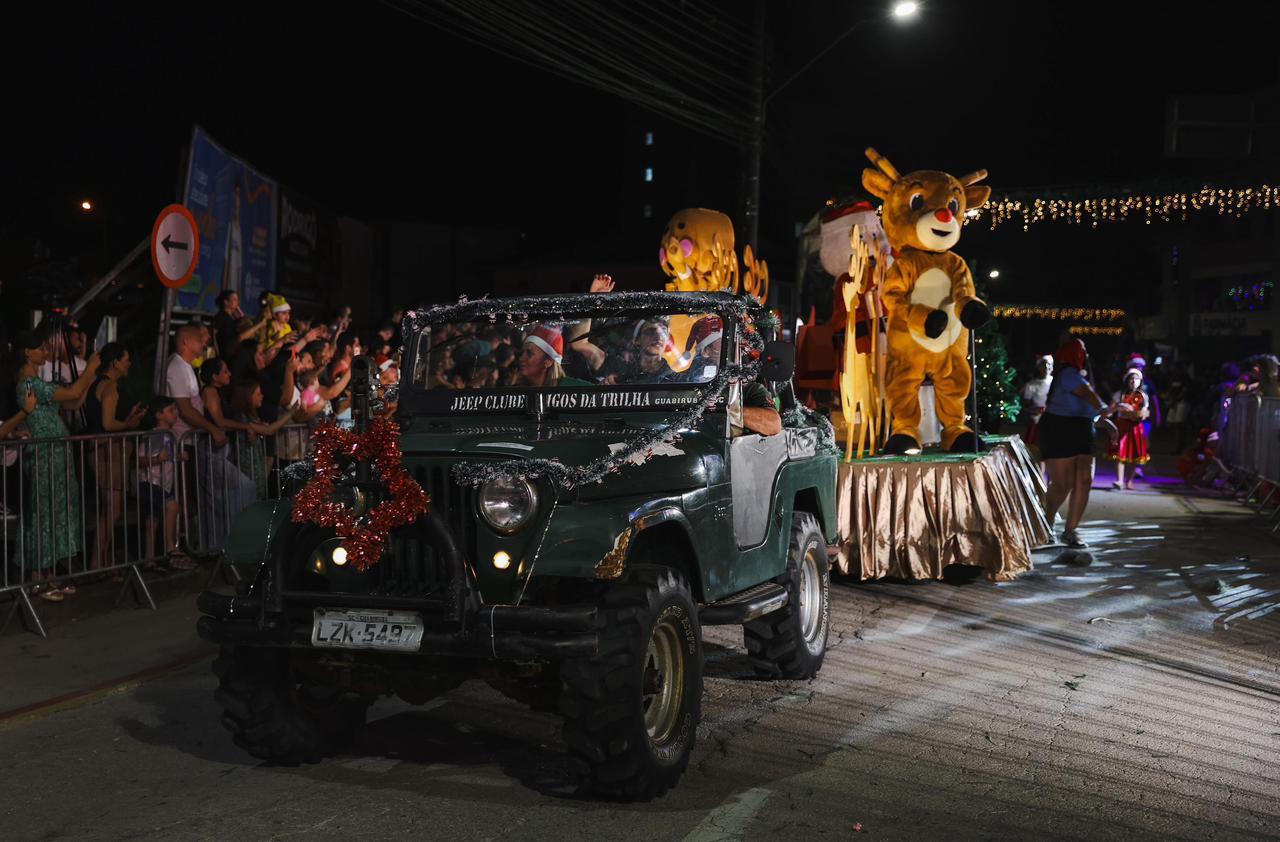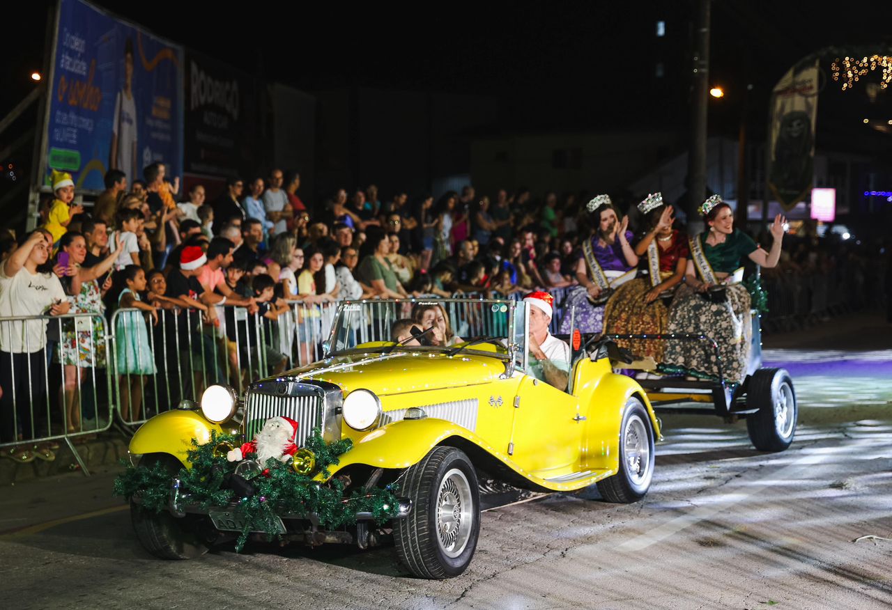 Logo em seguida, as atenções se voltaram para a rua principal da cidade, onde aconteceu o tão aguardado Desfile Natal Mágico em Guabiruba. Aproximadamente 10 mil pessoas prestigiaram o grandioso cortejo, que trouxe brilho, criatividade e emoção em cada detalhe. Ao todo, 20 grupos da cidade e da região desfilaram com carros alegóricos, figurinos iluminados e apresentações temáticas que celebraram o espírito natalino.