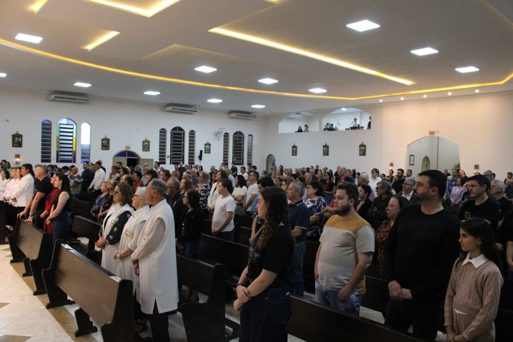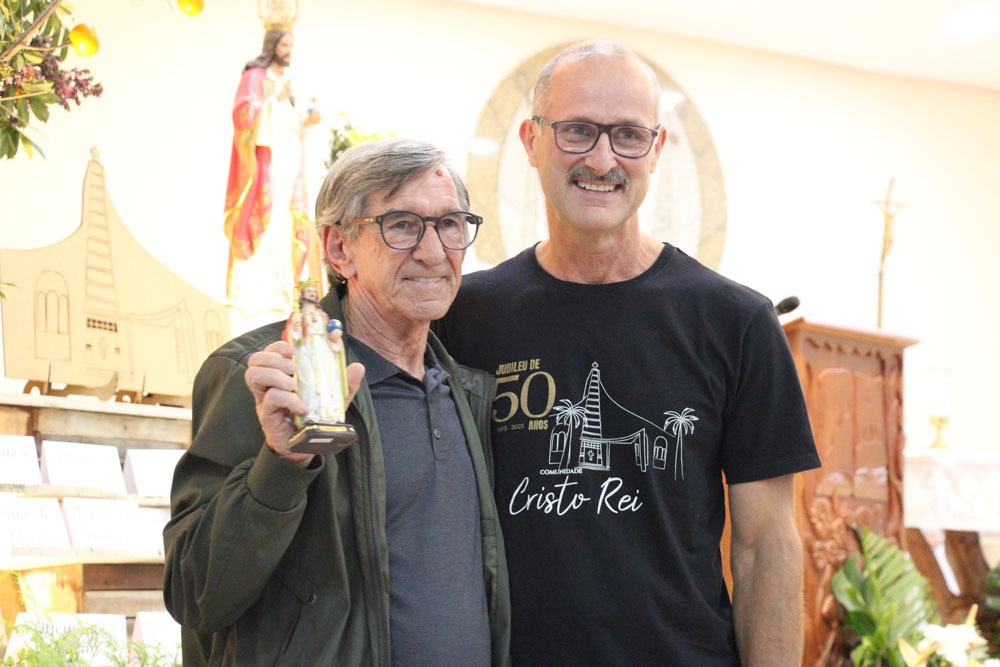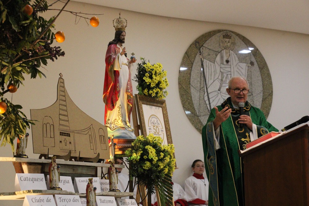 “Hoje, 18 de outubro, é de fato o dia que iniciou a caminhada da comunidade. Sempre que celebramos um Jubileu fazemos memória de todos aqueles que fizeram parte desta história de alguma maneira. Sabemos que todo começo é difícil, o bairro estava se desenvolvendo e a igreja cresceu junto dele. Também é importante falarmos da escolha do padroeiro, que foi o Cristo Rei, e sabemos todo o significado e sentido que Ele tem para a nossa Igreja. De fato, hoje é dia de dizer obrigado, de agradecer a todos que contribuíram para que chegássemos até aqui, sejam eles sacerdotes, catequistas, coordenadores e fiéis, porque sabemos o quão complexo é a formação de uma comunidade”, falou o pároco, padre Hélio Feuser.