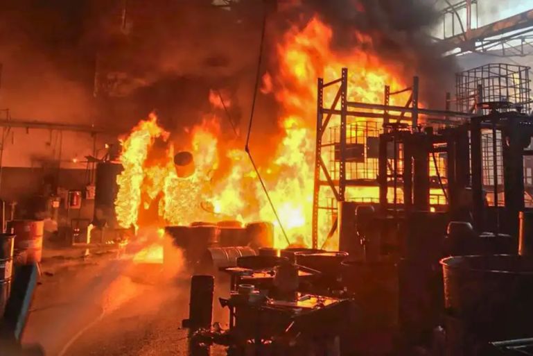 O depósito da distribuidora, que fica na Avenida Fábio Eduardo Ramos Esquivel, foi totalmente consumido pelas chamas.