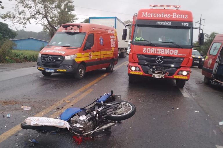 A colisão entre um automóvel e uma motocicleta deixou três pessoas feridas na tarde desta sexta-feira, 25 de julho, na BR-280, km 31, no bairro Itinga, em Araquari (SC) norte de Santa Catarina. O acidente foi registrado por volta das 13h06 e mobilizou equipes do Corpo de Bombeiros Militar de Santa Catarina (CBMSC) e Bombeiros Voluntários.
