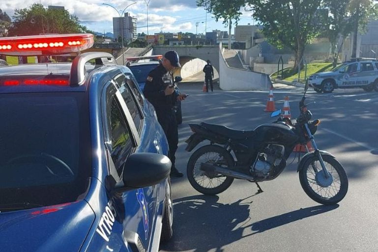 Durante a ação, foram lavradas cerca de 30 notificações e quatro veículos foram removidos, entre eles, três motocicletas e um Fiat Uno branco, que estava com o licenciamento vencido desde 2019. No total, as equipes realizaram aproximadamente 50 abordagens.
