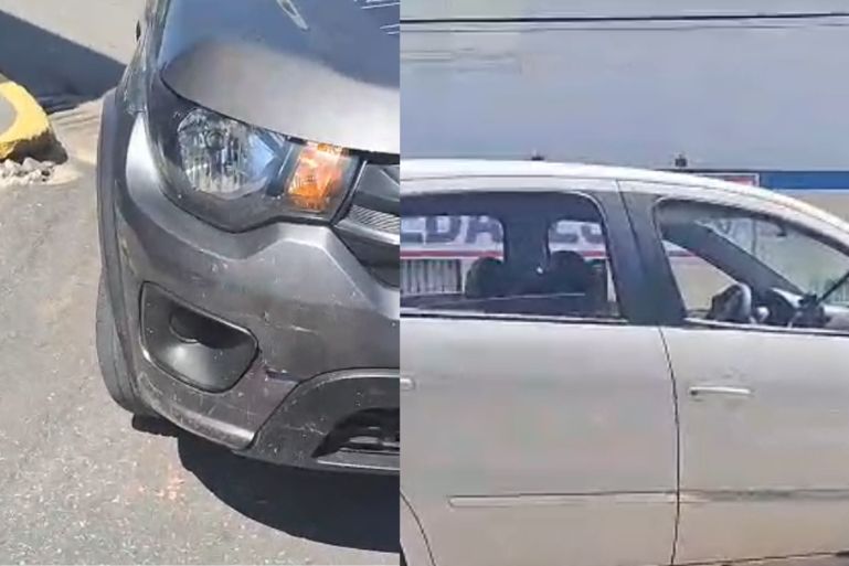 O impacto atingiu a lateral do para-choque do Mobi, causando danos leves. Apesar do susto, ninguém ficou ferido.