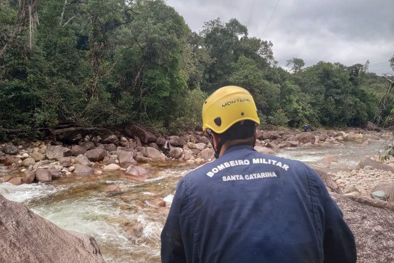 As equipes do Corpo de Bombeiros de Santa Catarina seguem nas buscas por um homem desaparecido em região de mata fechada e cursos d’água, na localidade de Garuva Acima, em Garuva, no Norte do Estado. A operação conta com ações terrestres e aquáticas.