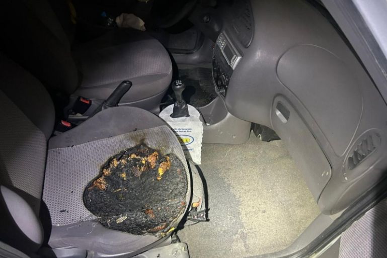 Ainda conforme o relato, o homem ateou fogo no banco dianteiro do carro, causando danos materiais.