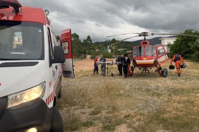 Diante da gravidade, a equipe médica solicitou o apoio do Serviço Aeromédico Arcanjo 03, de Blumenau. Mesmo com chuva no momento da ocorrência, a aeronave conseguiu pousar e realizar a transferência para o Hospital Marieta Konder Bornhausen, em Itajaí.