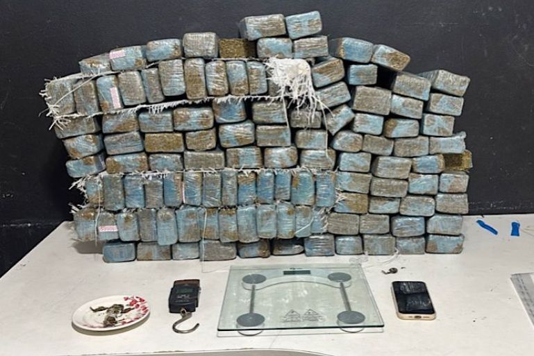Ao todo, foram apreendidos 113 tabletes, somando aproximadamente 89,3 quilos da droga, além de duas balanças de precisão.