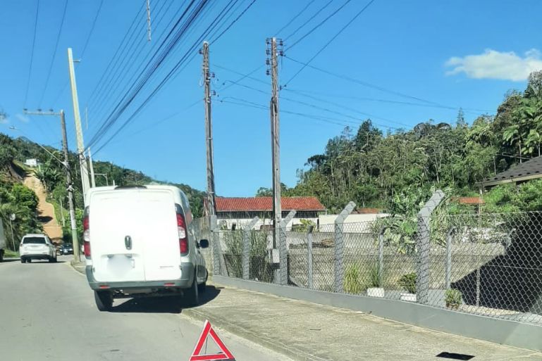 Na tarde desta quinta-feira (11), um carro colidiu contra um poste na rua Padre Antônio Eising, no bairro Azambuja, em Brusque.