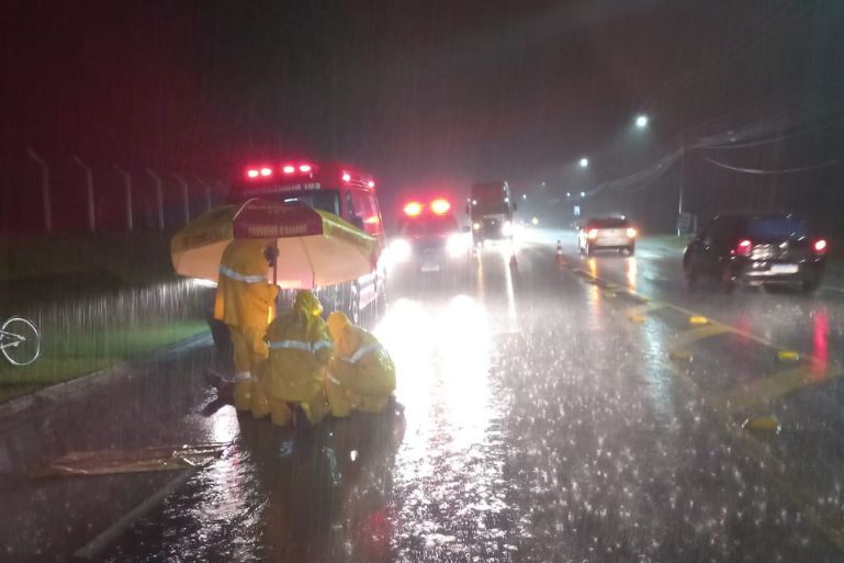 Segundo os bombeiros, o ciclista (sem idade divulgada), foi encontrado caído sobre a pista com a bicicleta presa entre as pernas e sem o uso de capacete. No momento do atendimento, a vítima apresentava um ferimento na região do supercílio e estava molhada em razão da chuva intensa que atingia o município, o que agravou a perda de temperatura corporal.