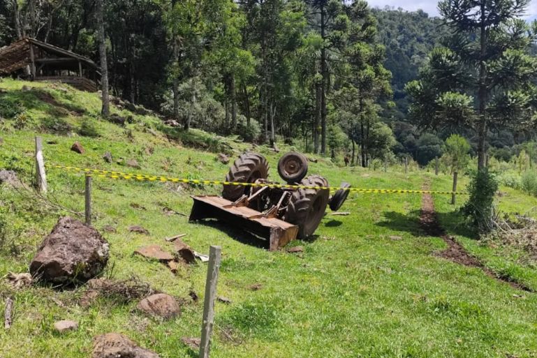 Um homem de 49 anos morreu na manhã desta quinta-feira (19) após um trator tombar no interior de Porto União, no Planalto Norte de Santa Catarina.
