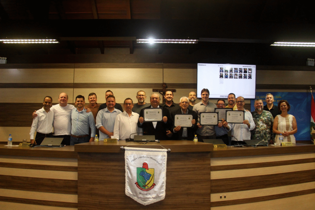O Hospital Azambuja recebeu, na tarde desta terça-feira, 9 de dezembro, reconhecimento público da Câmara Municipal de Brusque durante a sessão ordinária realizada às 17h. A homenagem integrou a Ordem do Dia e destacou a relevância histórica e atual da instituição para a saúde da região. Além do destaque ao hospital, a Câmara concedeu Comendas do Mérito a membros da diretoria, em reconhecimento às contribuições individuais para o desenvolvimento e a excelência dos serviços prestados.