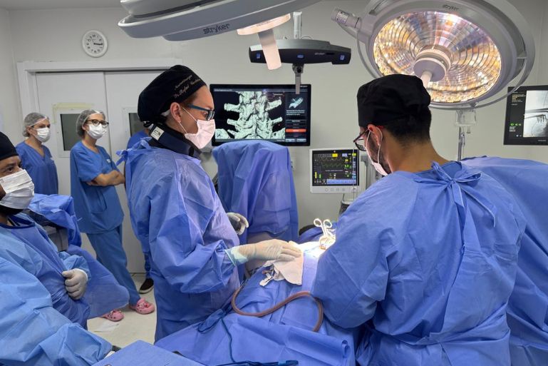 A evolução tecnológica também foi percebida no centro cirúrgico, com procedimentos que colocaram o hospital em evidência no Estado. Em 2025, o IMAS/Imigrantes passou a utilizar a tecnologia de fluorescência com Verde de Indocianina (ICG), possibilitando visualização em tempo real da vascularização do tecido e maior segurança ao paciente, reduzindo riscos e complicações pós-operatórias. Na área de coluna, o hospital realizou as primeiras cirurgias utilizando neuronavegação, após treinamento intensivo da equipe do centro cirúrgico, com participação de médicos, enfermagem, instrumentadores e suporte técnico. Os procedimentos ocorreram com atendimentos via SUS e um por convênio, marcando o início do uso efetivo de uma das tecnologias mais modernas disponíveis para cirurgias de coluna e crânio.