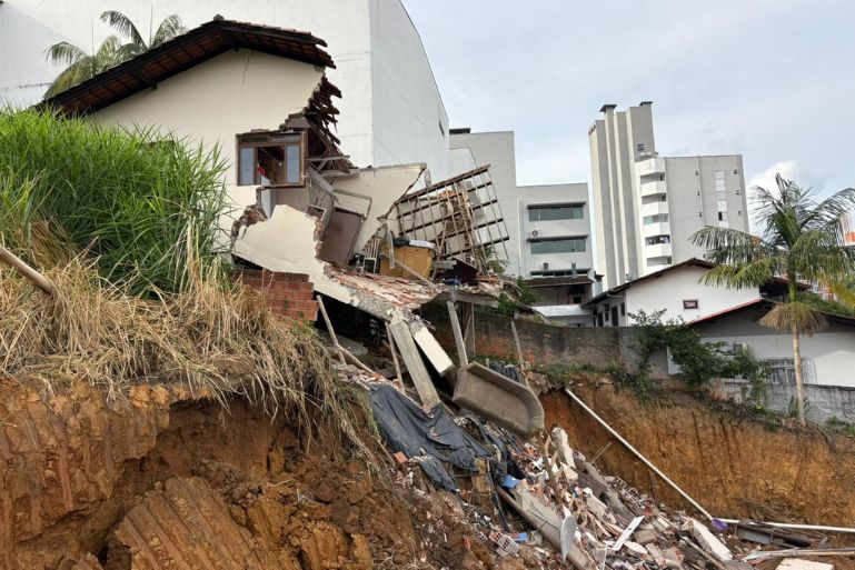 Uma casa desabou na madrugada desta terça-feira (21), por volta das 00h20, no bairro Escola Agrícola, em Blumenau. O imóvel já apresentava graves danos estruturais e vinha sendo monitorado após o surgimento de rachaduras que se intensificaram nas últimas semanas.