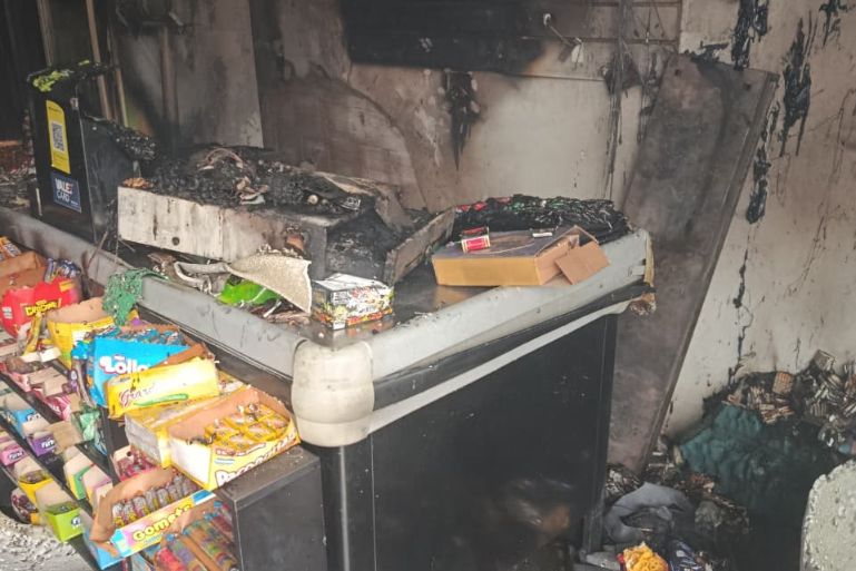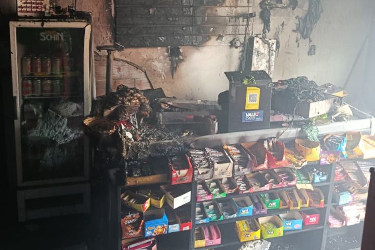 O foco das chamas estava concentrado na área do balcão da caixa registradora, próximo à entrada do imóvel. As equipes montaram uma linha de ataque e realizaram combate direto ao fogo, conseguindo extinguir rapidamente as chamas antes que se espalhassem para outras partes do prédio.