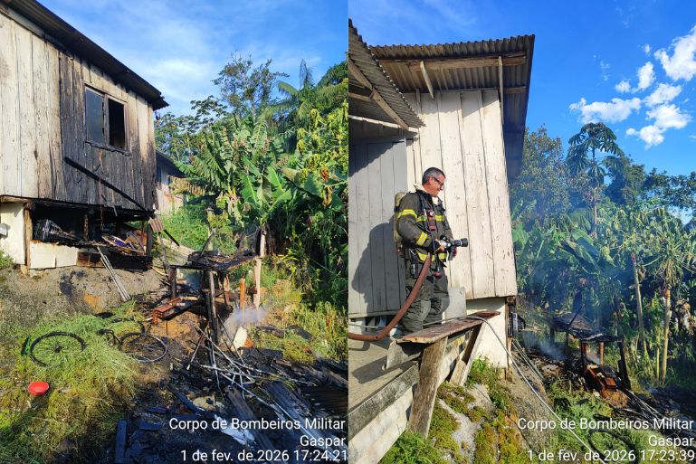 Na tarde deste domingo, 1º de fevereiro, por volta das 16h57, o Corpo de Bombeiros Militar de Gaspar foi acionado para atender uma ocorrência de incêndio em edificação residencial, localizada na Rua Teodoro Coradini, no bairro Gasparinho.