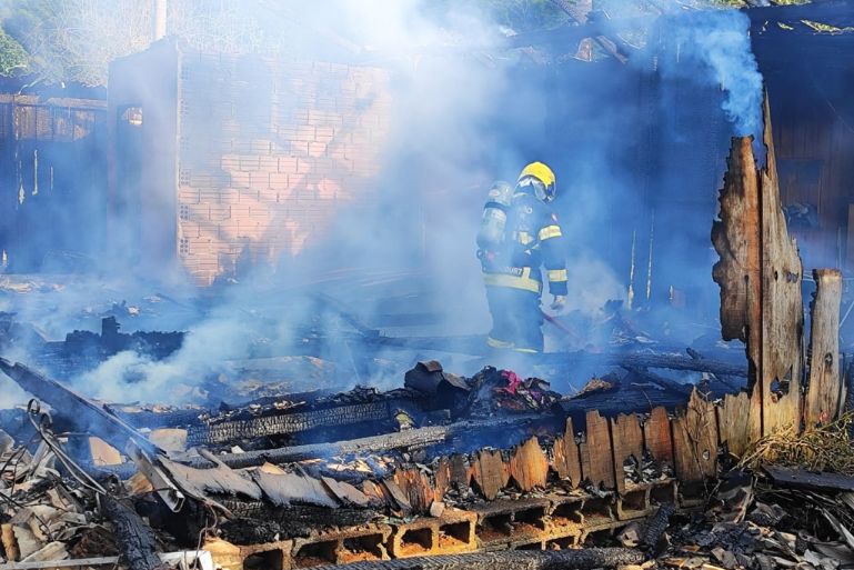 Apesar da destruição, os bombeiros conseguiram salvar alguns itens pessoais e ferramentas que estavam na parte de alvenaria da residência.