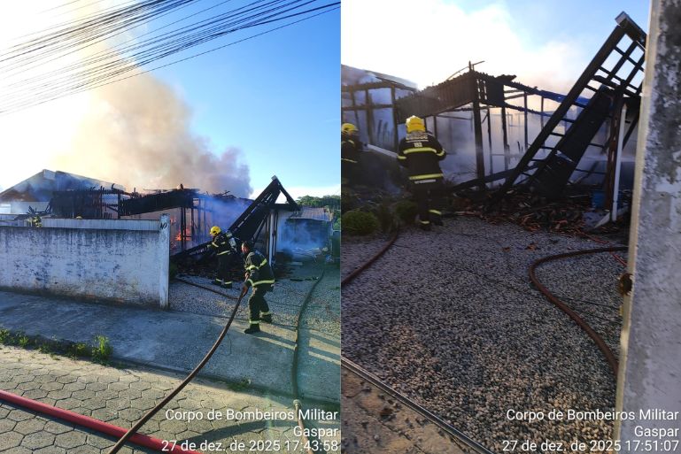 No fim da tarde deste sábado (27), por volta das 17h32, uma residência foi completamente tomada pelas chamas no bairro Coloninha, em Gaspar. O Corpo de Bombeiros Militar foi acionado via central COBOM para atendimento à ocorrência, que aconteceu na rua Heinrich Gorish.