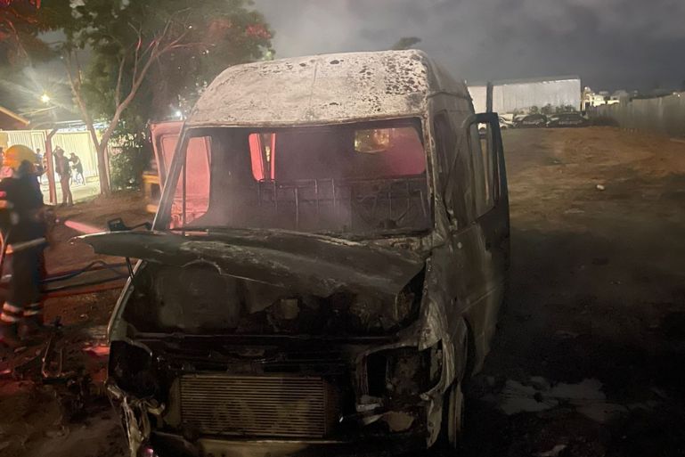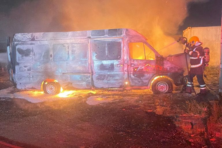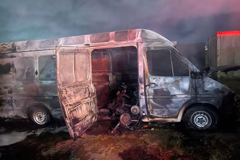 Ao chegarem no local, os bombeiros constataram que se tratava de um furgão Mercedes-Benz Sprinter, que estava estacionado em um pátio aberto pertencente à Polícia Civil, sem portão de fechamento. No momento da chegada das equipes, o veículo já estava completamente tomado pelas chamas.