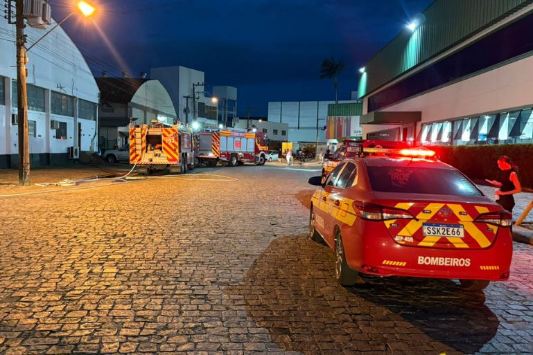 Além do galpão da empresa de móveis, dois estabelecimentos vizinhos também teriam sido atingidos pelo incêndio.