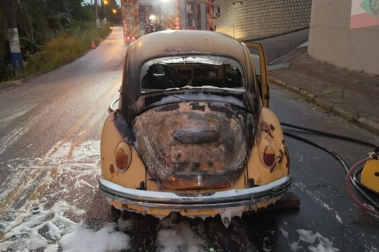 Um incêndio em veículo mobilizou o Corpo de Bombeiros por volta das 18h14 deste sábado (22) na Rua José Júlio Schumacher, no Centro de Guabiruba. O caso envolveu um VW Fusca amarelo, que estava em um aclive da via quando começou a pegar fogo na parte traseira, onde fica o motor.