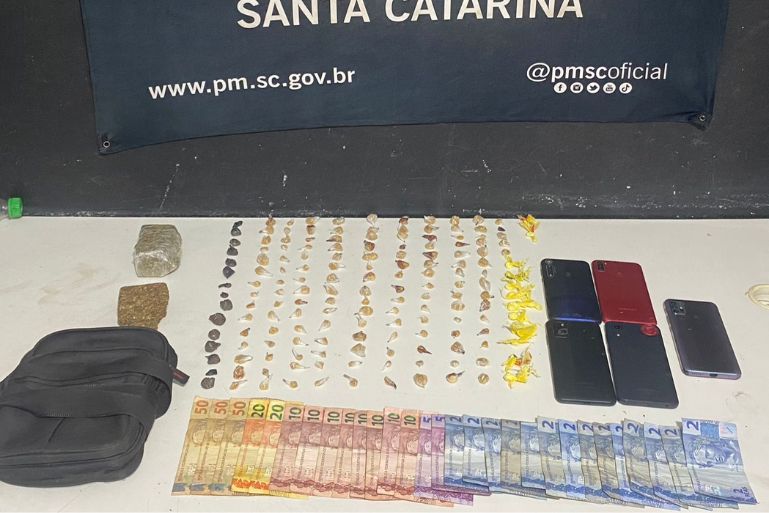 Durante a ação, outro envolvido, foi abordado portando uma bolsa com aproximadamente 75 gramas de crack, distribuídas em 155 pedras, 189 gramas de maconha em duas porções, cerca de 7 gramas de cocaína fracionadas em 12 porções, além da quantia de R$ 308 em dinheiro. Nas proximidades, também foram apreendidos seis aparelhos celulares, supostamente utilizados pelos criminosos, encaminhados para perícia.
