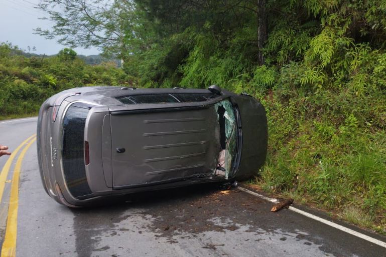 Durante o atendimento, a condutora relatou que o veículo estaria soltando fumaça e poderia haver risco de incêndio. Diante da informação, a guarnição deslocou-se imediatamente até o local do capotamento para avaliar a cena.