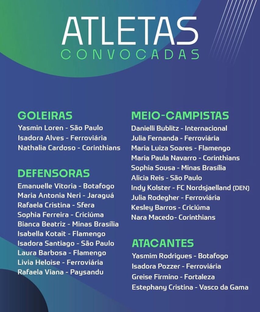 Além da brusquense, também foram convocadas Sophia e Marry, do Criciúma, e Maria Antônia, do Meninas de Jaraguá, confirmando o bom momento do futebol feminino de base no Estado.