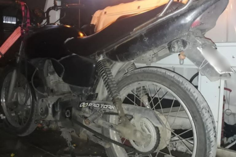 Durante a verificação no sistema, os policiais constataram que a cor original da motocicleta era cinza, mas havia sido pintada de preto. Além disso, a placa não correspondia ao número de chassi gravado na estrutura do veículo.