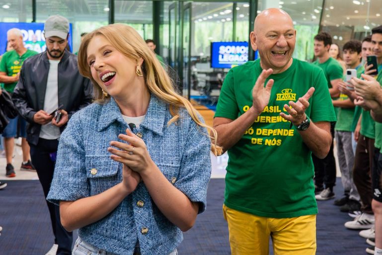 A influenciadora Cela Lopes esteve nesta quarta-feira, 8, no Centro Administrativo da Havan, em Brusque (SC), onde foi recebida por Luciano Hang e pelos colaboradores com um corredor de boas-vindas. A visita marca o início de uma nova parceria com a varejista, com a gravação de um comercial ao lado do empresário.