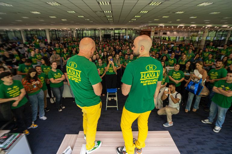 Na sequência, Luciano apresentou ao influenciador o Centro Administrativo da Havan. No local, Firmino foi recebido com o tradicional corredor formado por colaboradores da empresa, uma recepção que o deixou emocionado.