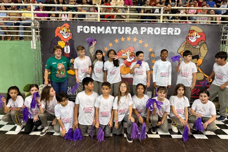 Na noite desta quarta-feira (26), a Arena Multiuso de Brusque foi palco de uma grande celebração: a formatura do Programa Educacional de Resistência às Drogas e à Violência (Proerd), promovido pela Polícia Militar de Santa Catarina (PMSC), por meio do 18º Batalhão de Polícia Militar.
