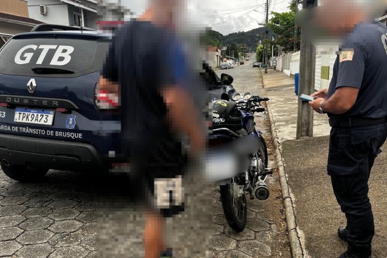 Uma motocicleta em situação irregular foi removida ao pátio após abordagem realizada pela Guarda de Trânsito de Brusque (GTB) na rua DJ-025, no bairro Dom Joaquim.