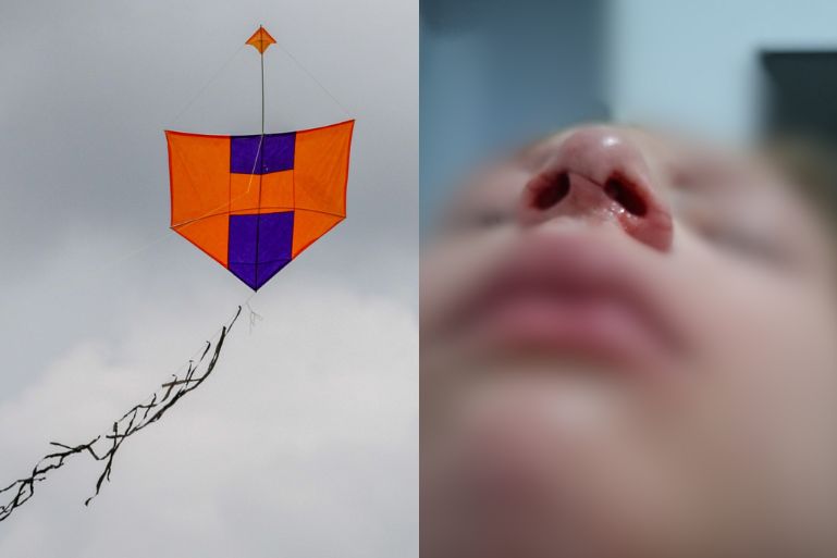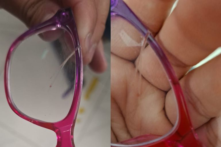 A criança sofreu um corte no nariz e teve os óculos danificados. Segundo a família, o impacto da linha no óculos impediu que os ferimentos fossem ainda mais graves.