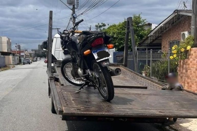 Em consulta aos sistemas, os policiais constataram que o condutor estava com a habilitação suspensa e que a motocicleta possuía débitos administrativos no valor de R$ 15.244,05. O veículo foi removido ao pátio por licenciamento vencido.